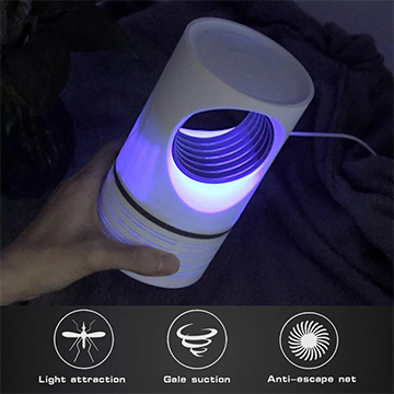 يحتوي مصباح قاتل البعوض على مصباح UV بقوة 15 وات بكثافة عالية يمكن أن ينبعث منها طول موجي يبلغ 365 نانومتر لجذب البعوض والحشرات الطائرة الضارة الأخرى بشكل فعال ثم قتلهم على الفور عندما تلمس الحشرات الطائرة الجهد العالي لشبكة الطاقة 4200 فولت. يمكن أن تغطي بفعالية نطاقًا يزيد عن 80 مترًا مربعًا.