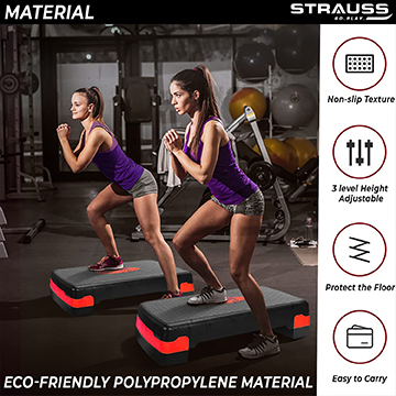 ارتفاع قابل للتعديل: 4 "-6" سطح المنصة غير لاصق وغير قابل للانزلاق وممتص للصدمات مادة البولي بروبيلين شديدة التحمل تمنح جهاز ستيبر سعة وزن عالية 440 باوند مثالي لتمارين الكارديو و/أو لتقوية الجزء السفلي من جسمك